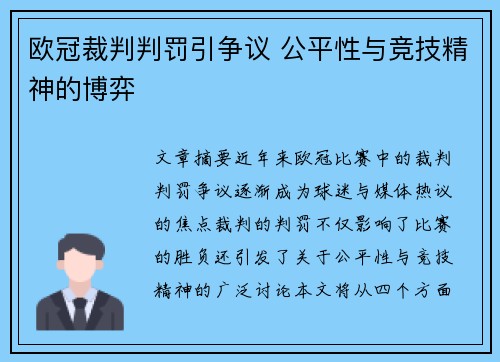 本文将围绕比利时足球的代表性俱乐部安德莱赫特的辉煌传奇以及比利时国家队——红魔梦回欧冠的故事展开探讨。安德莱赫特作为比利时历史上最为成功的俱乐部之一,经历了多个世纪的辉煌和跌宕起伏,其历史上的多次欧洲冠军联赛的精彩表现为其赢得了无数赞誉。而比利时国家队“红魔”近年来的崛起,也让球迷们充满期待,特别是在欧冠赛场上的表现。通过从安德莱赫特的辉煌历史、俱乐部文化、红魔的崛起及其对欧冠赛场的渴望等多个方面...